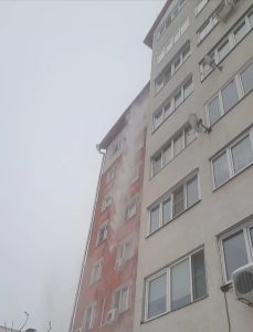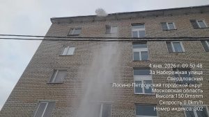Чистка кровли от снега и наледи путем промышленного альпинизма в доме №3а и №4а ул. Набережная.