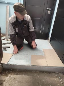 Приступили к укладке напольной плитки на 1 и 2 этажах в доме №9 (5 подъезд) ул. Набережная.