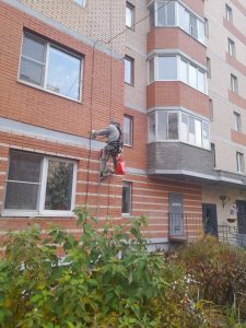 Утепление кирпичной кладки и герметизация швов методом промышленного альпинизма в доме №8 ул. Михаила Марченко.