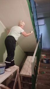Ведутся штукатурно-отделочные и малярные работы в местах общего пользования (лестничный марш) в доме №4 ул. Народного Ополчения.
