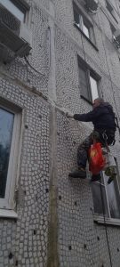 Утепление кирпичной кладки и герметизация швов методом промышленного альпинизма в доме №8 ул. Михаила Марченко.